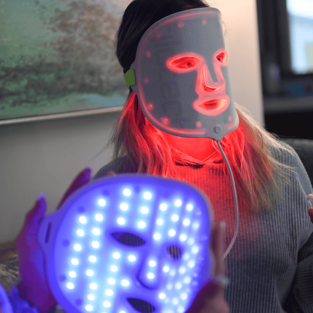 Blue Light: Destroys acne-causing bacteria and regulates oil production to quickly treat and prevent future breakouts.