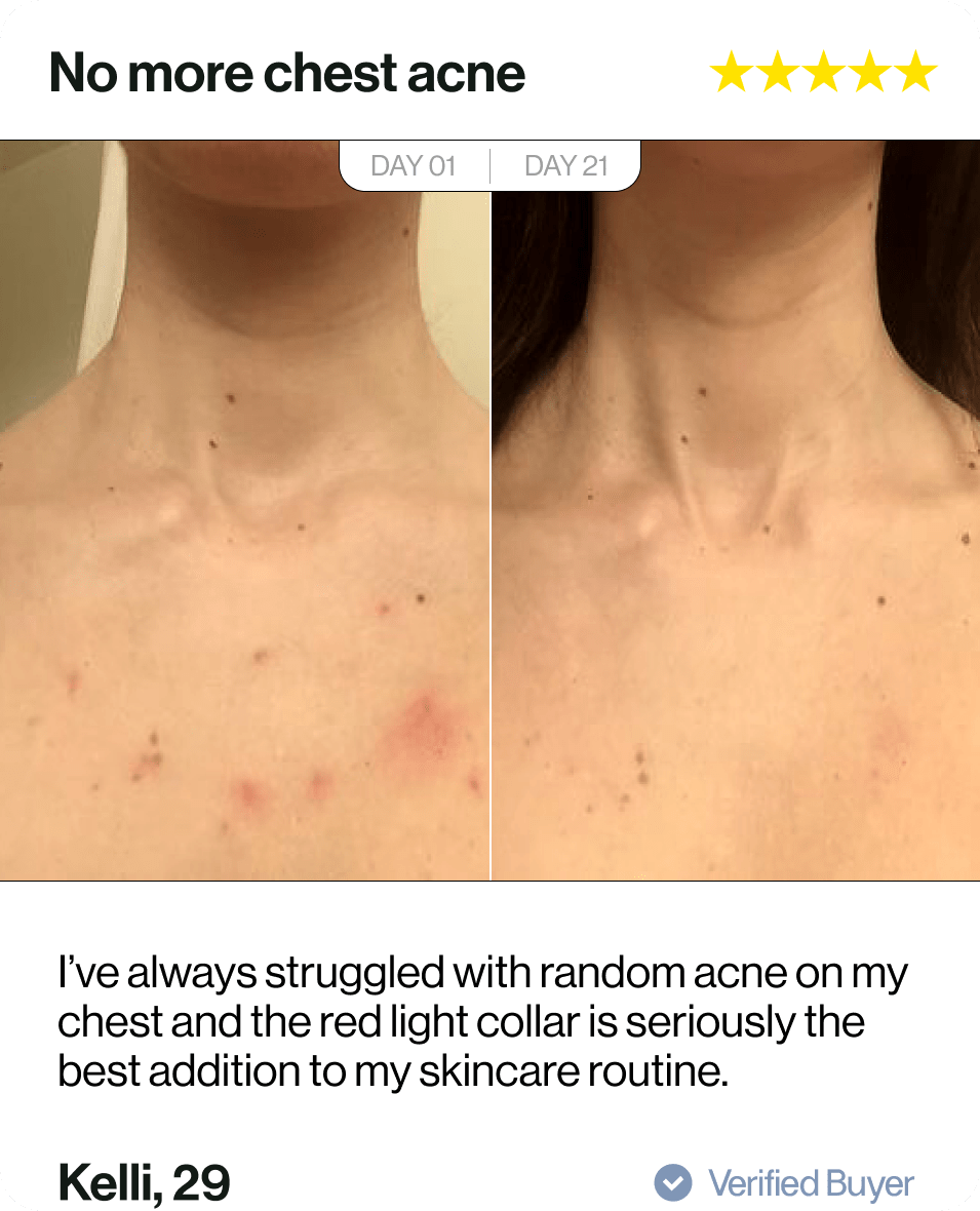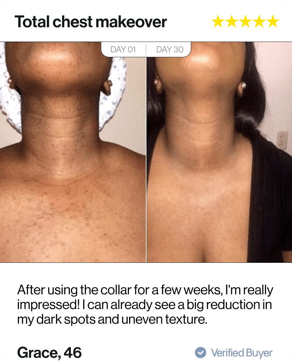 The Glotech™ Collar harnesses the power of NASA-developed LED technology. Clinically-proven wavelengths of red and near-infrared light accelerate the production of new skin cells to, quite literally, turn back time for your skin.