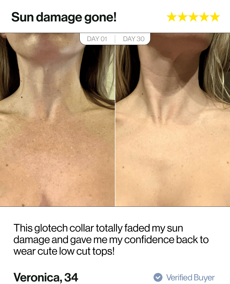 Absolutely! Red and near-infrared LED light therapy is FDA-cleared and safe for use on sensitive areas like the neck and chest. These wavelengths are non-invasive and gentle, promoting deep skin rejuvenation without heat, pain, or UV light. The Glotech™ Collar is designed to deliver professional-grade light therapy at home, ensuring comfort and safety while targeting the delicate décolletage. It’s an ideal solution for those looking to treat signs of aging naturally and effectively. That said, individuals with light sensitivity or those taking medications that cause photosensitivity should consult a healthcare professional before using LED treatments. Always follow safety guidelines to ensure the best and safest results.