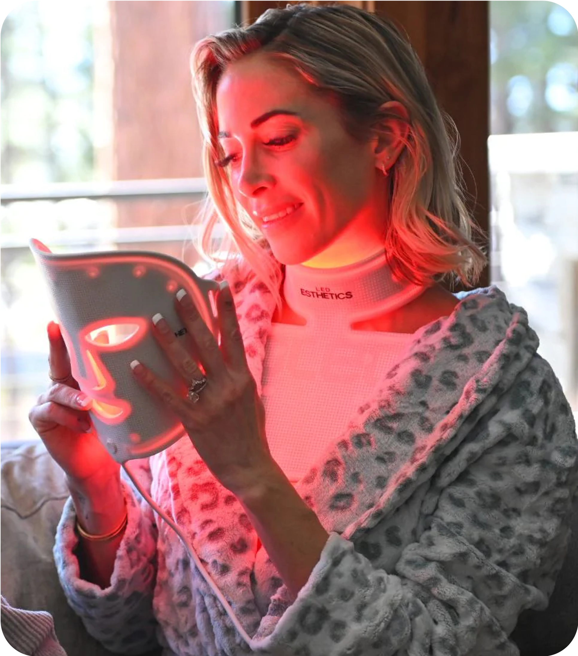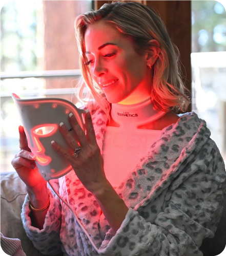 Discover our cutting-edge anti-aging Mask and Collar for at-home clinical results.